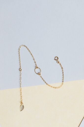 Precision-crafted 14K Gold-Filled bracelet featuring a minimalist chain design with secure clasp closure. Adorned with a 9mm wire circle accent. Adjustable length ranging from 6 to 7.5 inches for optimal fit.