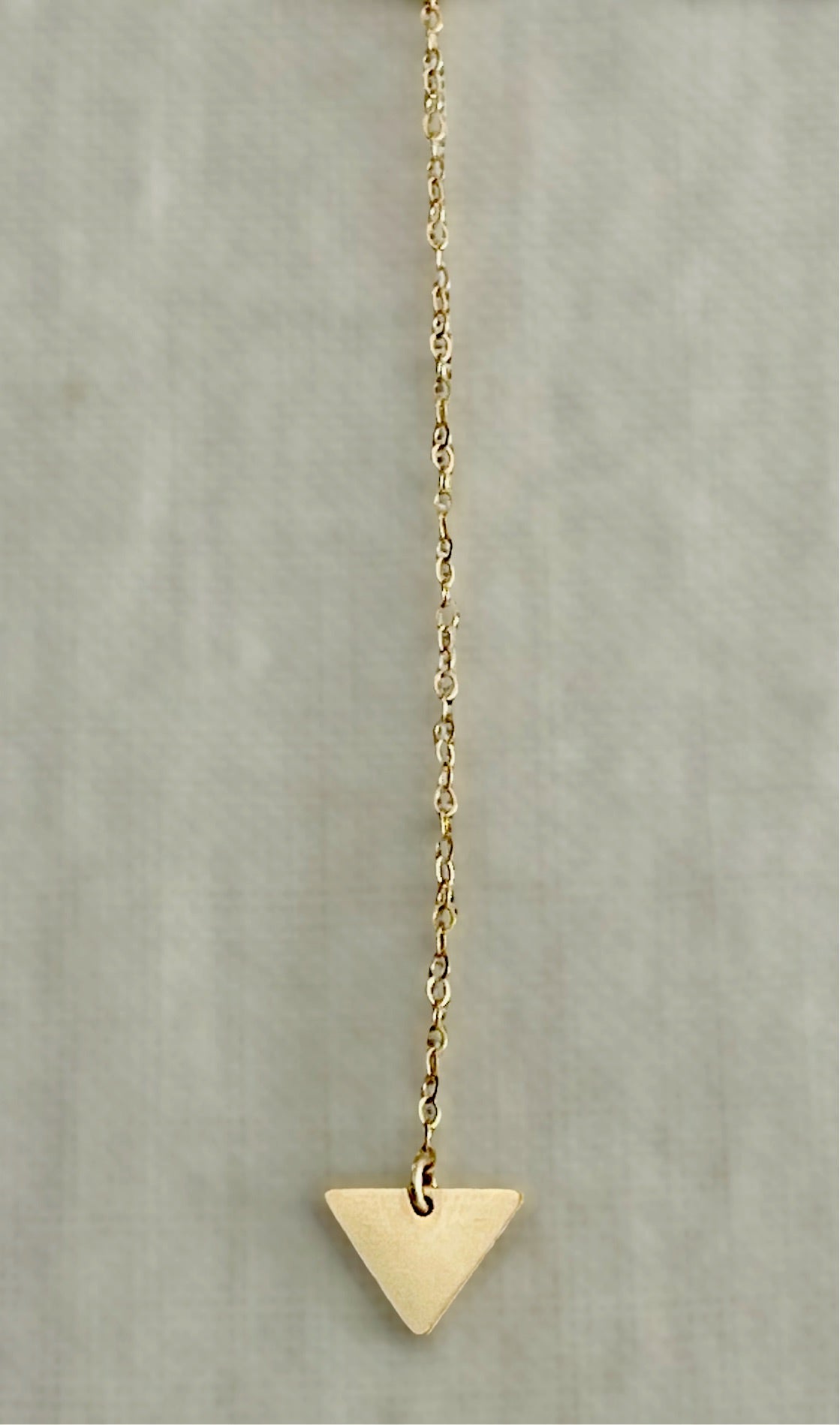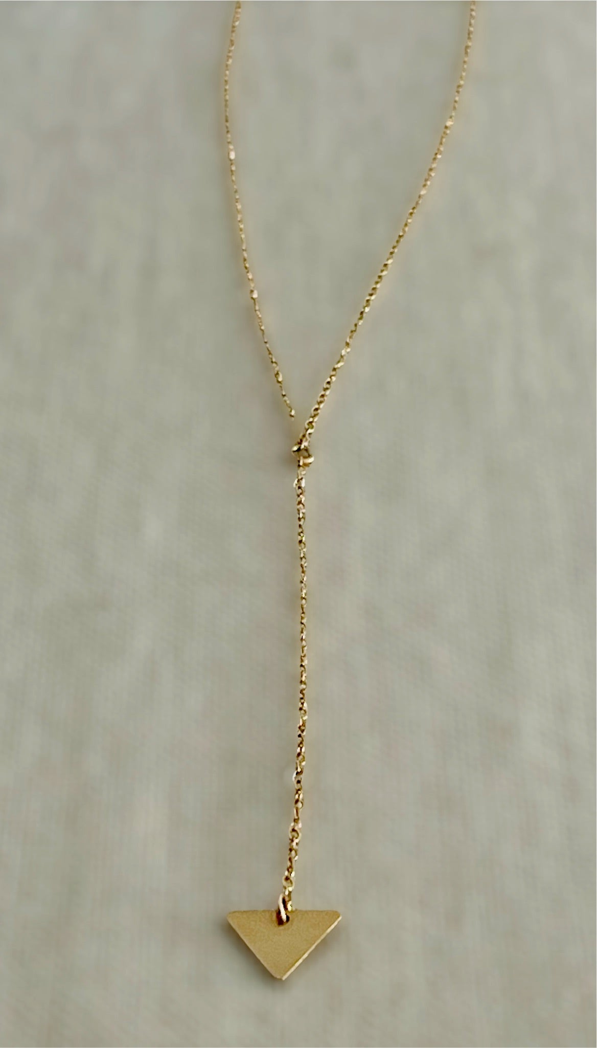 Crafted from premium 14 kt gold-filled material, the Justina Y-style chain necklace showcases an elegant triangle charm accent. This sophisticated piece offers adjustable length from 16 to 18.5 inches with a distinctive 3-inch drop, creating a refined silhouette for versatile styling options.